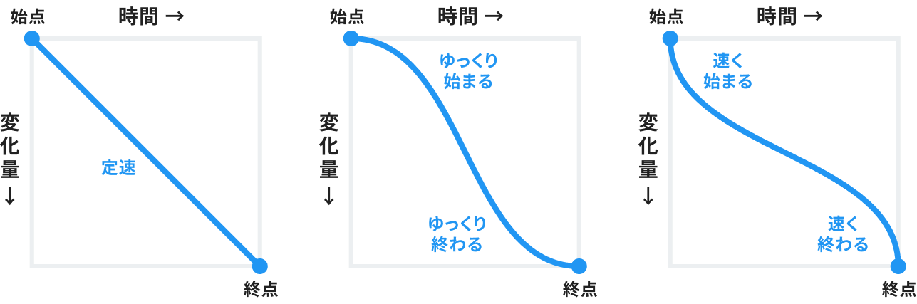 | CSS | linear | ease初期値 | ease-in | ease-out | ease-in-out |